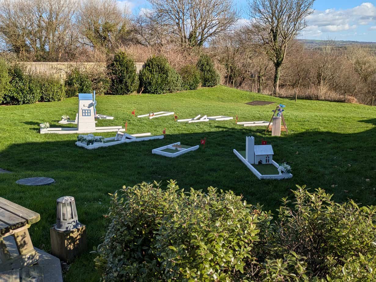 Minigolf set up at The Green Cornwall for the wedding of Danica & Peter